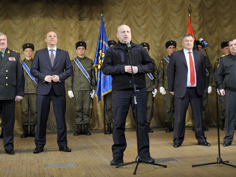«Було прийнято рішення звернутися до тих, хто тоді був у самообороні Майдану, хто власною кров'ю і власним життям захистив Україну від тиранії, - сказав О.Турчинов, звертаючись до присутніх.
